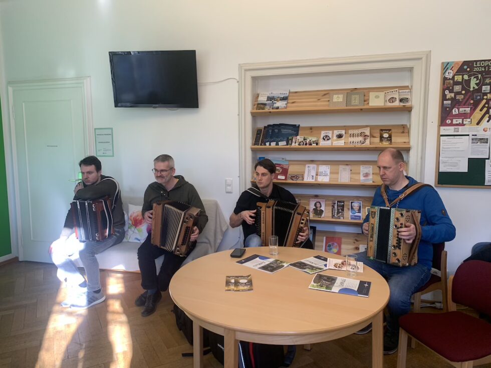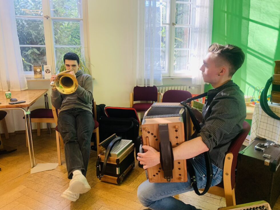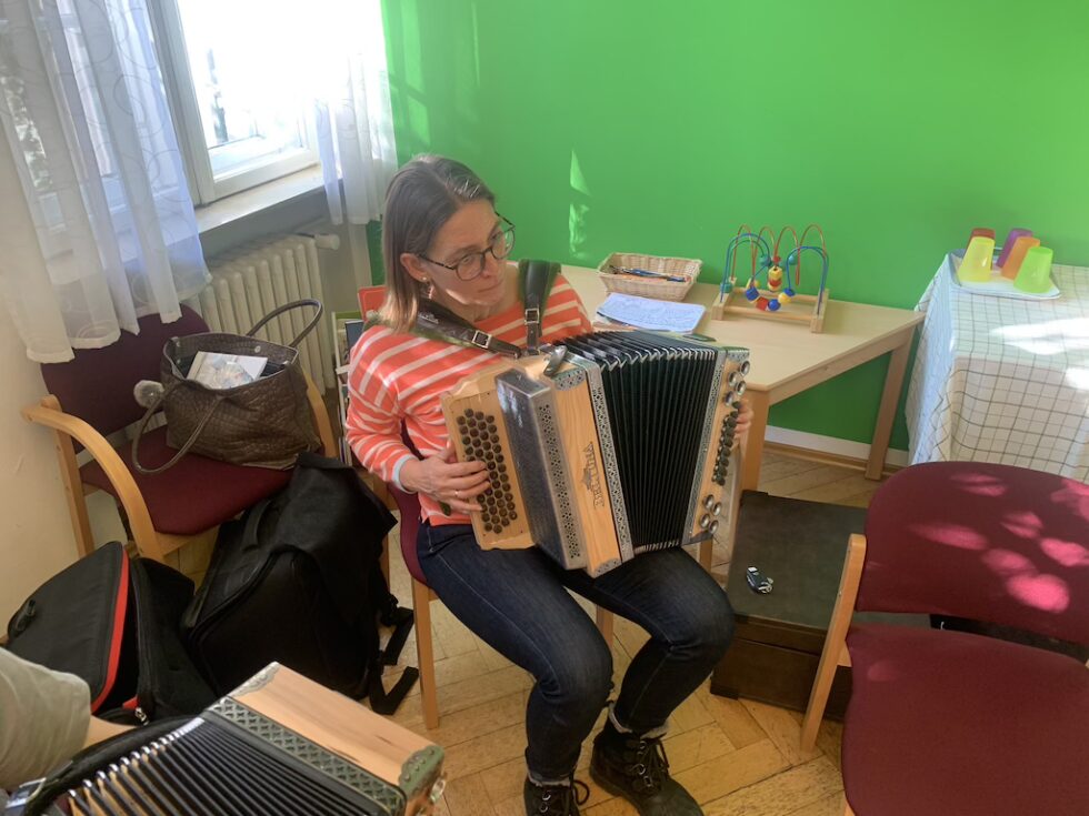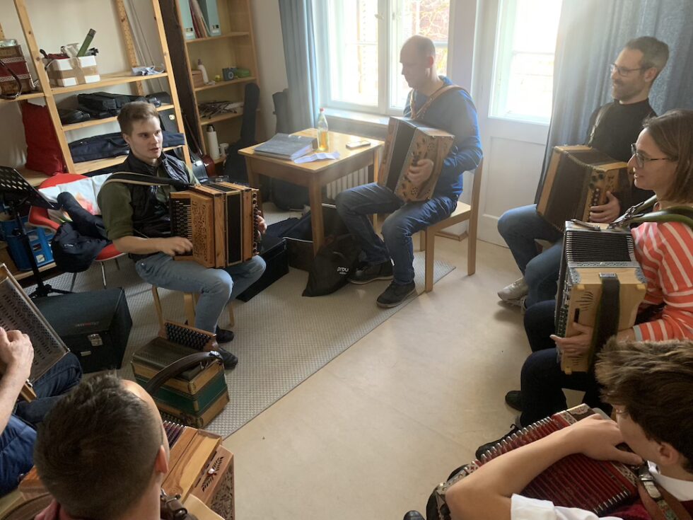 Neben zwei Einheiten Einzelunterricht gab es für die rund 30 Teilnehmerinnen und Teilnehmer, bei einem ausgedehnten Mittagessen, interessante Workshops über freies Musizieren, Begleiten und improvisieren auf der Steir. Harmonika.