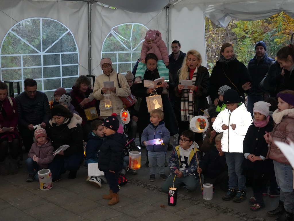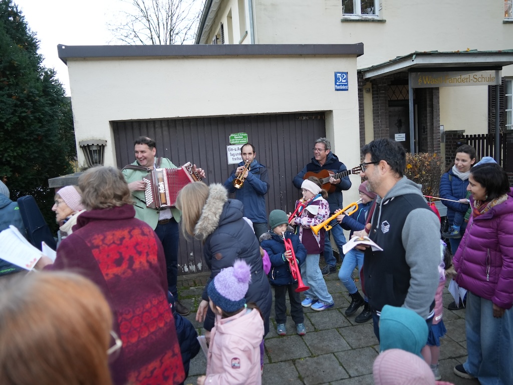 Im warm beleuchteten Garten unserer Musikschule wurde mit musikalischer Umrahmung die Legende des heiligen Martins gelesen, und bei Punsch und Gebäck der gemeinsame Abend gefeiert.