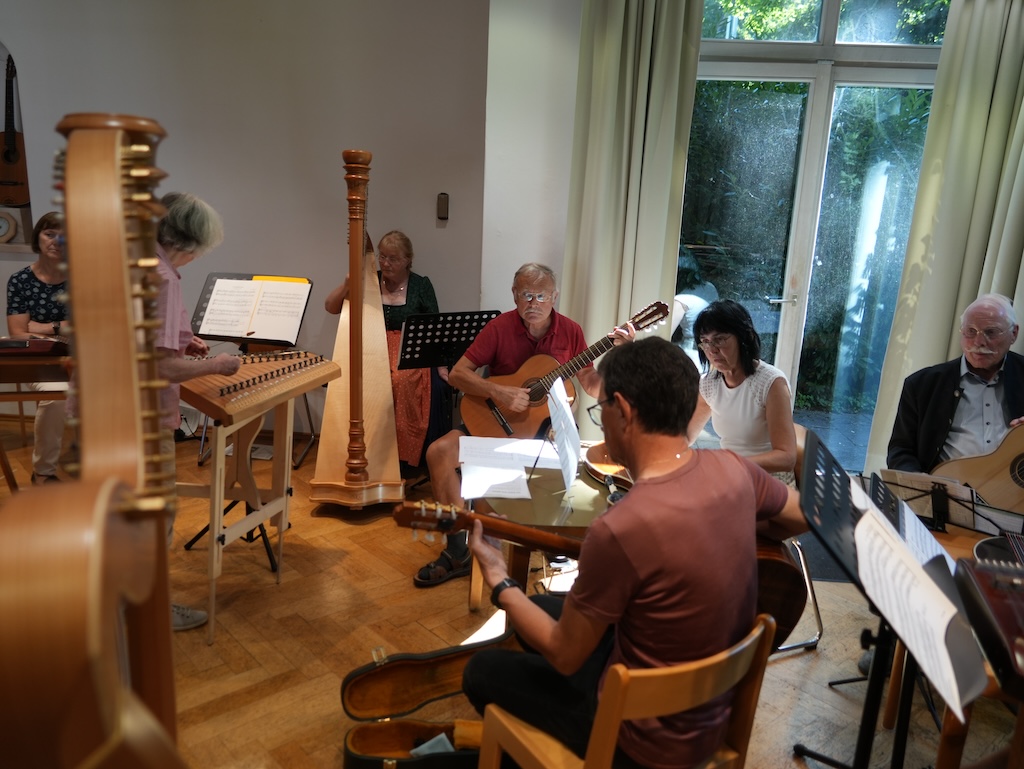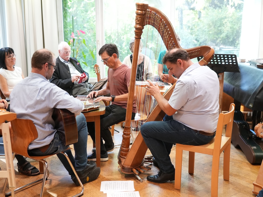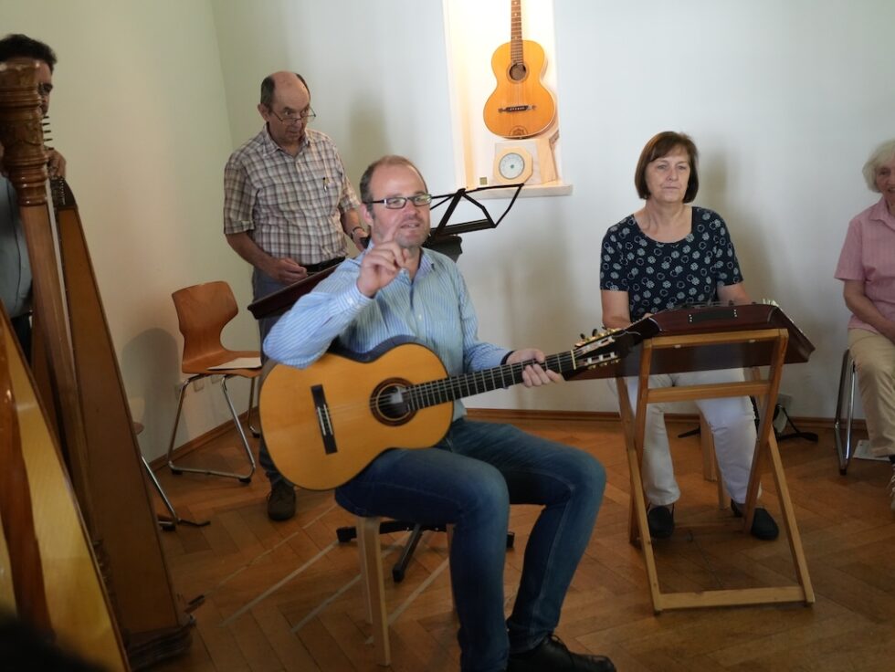 gaben ihr Wissen und ihre Erfahrung auf (Kontra-)Gitarre, Hackbrett, Harfe, Zither und Kontrabass weiter. Unsere Musikschule bot dabei rund 25 Teilnehmenden reichlich (musikalischen) Raum für den Unterricht in Gruppen und zwei Einheiten mit ausgewählten Schwerpunktthemen.